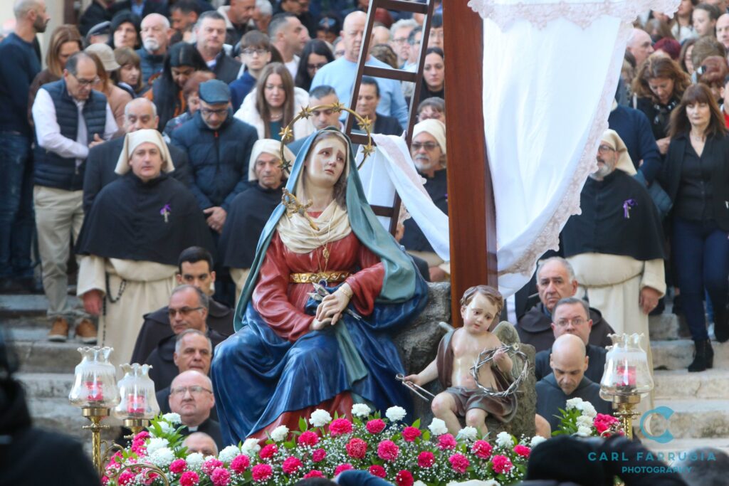 Omm qaddis isma’ talbi, dawk il-pjagi qegħdli f’qalbi, t’Ibnek Ġesù Msallab. Iva, O Omm tiegħi, int li f’dan il-mument tagħmlilna tant kuraġġ, għaliex int kont hemm, imxejt ma’ Ibnek pass pass, u kont wieqfa ħdejn is-salib tiegħu. Imma x’ġegħlek tibqa’; wieqfa tarah f’dak l-istat kienet il-fidi, għaliex int il-mara ta’ fidi per eċċellenza, u minkejja dik it-traġedja kollha, int kont qed temmen li dak ma kienx it-tmiem ta’ Ibnek, imma dak kien neċessarju, għax permezz ta’ dak il-mument makabru, hu kien se jġedded kollox, kien qiegħed isalva lill-umanità mill-irbit tal-ħażen.